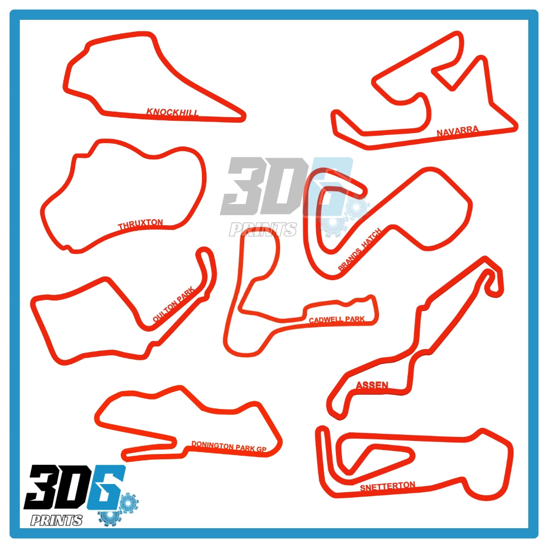 Bring the thrill of the track into your home, office, garage or man cave with this complete collection of 3D printed British Superbike (BSB) race circuits. Each circuit is carefully designed with a high-quality textured finish, making them the ultimate motorsport memorabilia and a stunning display for fans and riders alike.